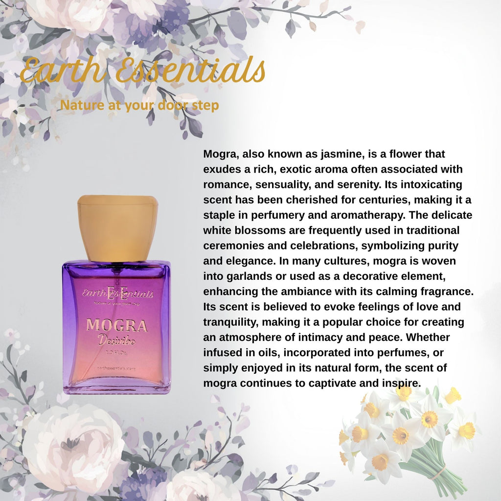 Elevate your daily routine with Earth Essentials Esprit de Parfum Desivibe Mogra. This go-getter fragrance is perfect for an everyday scent, with the Indian Jasmine offering a clean aroma. Bergamot, Jasmine, and woody notes are blended together in this signature scent. With its handy application on pulse points, you can smell amazing all day long. Earth Essentials has designed this scent with Gen Z in mind, so you can enjoy all of your desired features in one bottle.